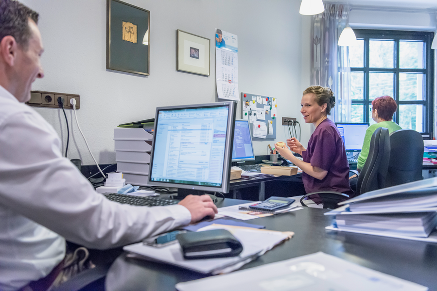 Großen Wert legen wir darauf, dass sich Jung und Alt in unserer Praxis wohl fühlen. Alle Behandlungsräume sowie der Wartebereich, unser Röntgenraum und auch das Patienten-WC befinden sich barrierearm im Erdgeschoss und sind somit für jeden leicht zugänglich.
